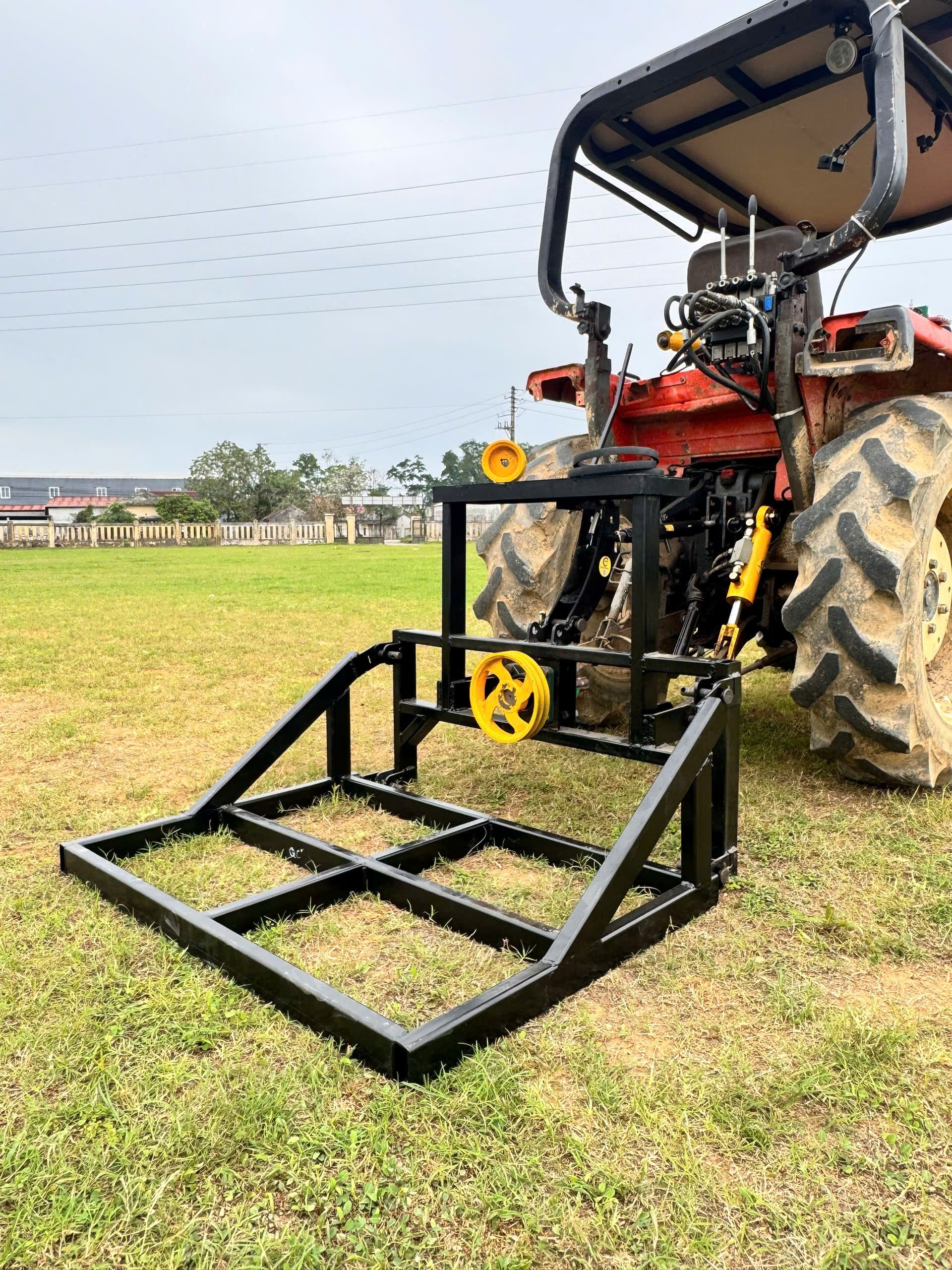Sàn đa năng có móc lật, Giá đỡ trục buly đa năng KTM, làm bằng thép chịu lực hộp 36 dày 3l, với trục 6 múi lắp vừa cho tất cả các loại trục cát đăng, lắp được cho mọi loại máy kéo, máy cày, có móc lật đổ lúa , có sàn phụ rộng 1m, ngang 80cm